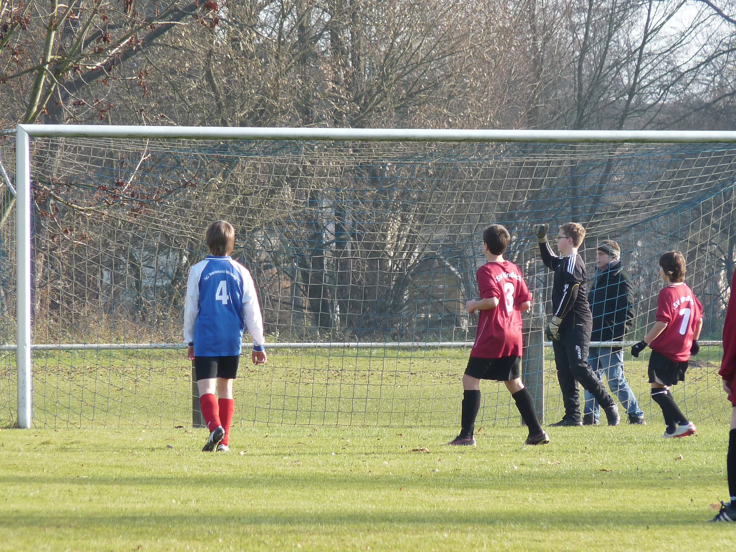 Die JFG zeigte sich gegenüber der Vorrunde stark formverbessert. So gingen die Jungs auch gleich durch Niklas Biener in Führung. Wenig später erzielte Niki seinen 2 Treffer. Beim 3:0 konnte sich endlich einmal wieder Fabricio Schubert, der an diesem Tag vor Spielfreude und Laufbereitschaft nur so sprühte, als Torschütze eintragen. Beim 4:0 kam dann auch noch das Glück des Tüchtigen dazu, als die 08er sich selbst bezwangen. Beim 5:0 drang der heute als Mittelfeldspieler agierende Tobias Lauterbach mit einen Sololauf im 16er ein und passte uneigennützig zum mitgelaufenden Niki, der nur noch die Kugel über die Torlinie schießen musste. Das 6:0 war wiederum Niki vorbehalten. Tobi spielte einen Zuckerpass in den freien Raum und Niki konnte alleine auf den Gäste TW zulaufen. Beim anschließend Pressschlag mit dem TW hatte er aber Glück, dass ihm der Ball genau vor die Füße viel und er nur noch einzuschieben brauchte. Fabian Lehnert wollte sich danach auch in die Torschützenliste eintragen, in dem er ebenfalls alleine auf den Gäste TW zusteuerte, sich den Ball aber zu weit vorlegte und so die Riesenmöglichkeit vergab. Das 7:0 blieb dann den Langzeitverletzten David Plewe vorbehalten. Kurz vor Schluss schafften dann die Kulmbacher den hochverdienten Ehrentreffer. Bei der JFG gefielen besonders Nazif Inan, der als Abwehrspieler den gegnerischen Sturm das Leben schwer machte. Die rechte Mittelfeldseite mit Fabian Reißaus und Fabricio Schubert, wo fast alle Angriffe der 1. Halbzeit liefen. Der uneigennützig Tobias Lauterbach, der lieber seine Mitspieler den Torerfolg gönnte, als selbst abzuschließen und natürlich der 4-fache Torschütze Niki. Ein Sieg, der für den kommenden Rückrundenbeginn hoffen lässt, zumal sich die Abwehr um den stark formverbesserten Thomas Blätterlein gefäßtigt hat, das Mittelfeld über mehr Spielfreude verfügt und der Sturm so mit mehr Tormöglichkeiten erhält. Tore: 1:0 Biener, 2:0 Biener, 3:0 Schubert, 4:0 Eigentor, 5:0 Biener, 6:0 Biener, 7:0 Plewe, 7:1