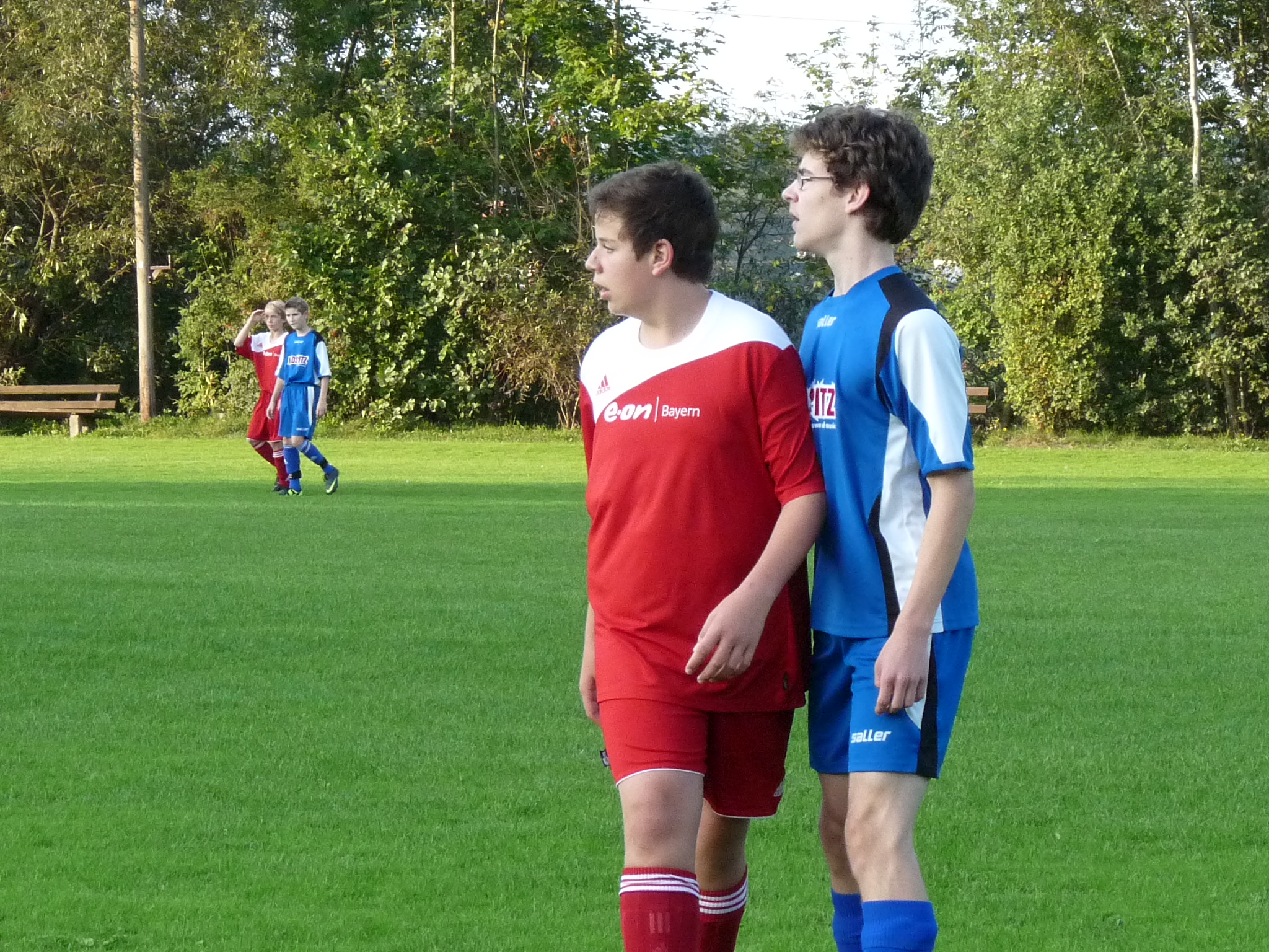 Im ersten Heimspiel der Saison gab es erneut eine Niederlagen gegen einen nicht all zu starken Gegner. Kaum auf dem Platz, schon fiel das 0:1. Libero Philipp Kröger verließ sich auf TW Thomas Blätterlein, Thomas zögerte aber und so konnte der Gästespieler bevor Thomas richtig zugreifen konnte den Ball ins Tor schießen. In der 18. Minute fiel das 1:1 durch den bis dahin nicht aufgefallenen JFG Stürmer Tobias Lauterbach. Tobi setzte in dieser Szene energisch nach und schob überlegt zum Ausgleich ein. Zwischen der 10. und 30. Spielminute hatte die JFG ihre beste Phase. In der 25. Min. fiel fast das 2:1 als der agile Johannes Gras zu Fabian Lehnert passte und sein Volleyschuss am Pfosten landete. Kurz danach scheiterte auch Maxi Kolb mit einer sehenswerten Direktabnahme am gute Gästetorhüter, der mit einer Glanzparade die Führung verhinderte. Der 1:2 Führungstreffer der Gäste war wiederum vermeidbar. Der Treffer viel durch eine Bogenlampe die zwar genau ins Tordreieck passte, aber mit etwas Sprungkraft vom TW hätte verhindert werden können, zumal der Ball sehr lange in der Luft war. Mit diesem Rückstand ging es in die Pause. In der Halbzeit vielen dann vom Trainer ein paar passende Worte über die mangelhafte Laufbereitschaft einiger Spieler. In der 40. Minute viel überraschend der Ausgleich zum 2:2 durch Niklas Biener. Niki zog einfach mal ab und seine Flatterbogenlampe schlug im Kasten der Oberländer ein. Dabei machte aber auch der Gästetorhüter keine gute Figur. Wer jetzt gedacht hätte die JFG könnte das Spiel noch gewinnen, irrte sich, denn kurz danach verlor Simon Fuchs ein Laufduell und der Stürmer schoss die Kugel am heraus eilenden TW vorbei ins Tor. Mit zunehmender Spieldauer machten sich konditionelle Probleme der Heimmannschaft breit. Hinzu kam eine unglückliche Aktion unseres Torhüters, die dazu beitrug, dass die Gäste die Führung auf 2:4 ausbauen konnten. Die Gegentor Nr. 5 und 6 wurden durch „den letzten Versuch“ das Spiel doch noch zu drehen begünstigt. Alles in allem eine schwache Vorstellung der JFG – Truppe, die in Johannes Gras noch ihren besten Spieler hatte. Tore: 1:1 Tobias Lauterbach 2:2 Niklas Biener