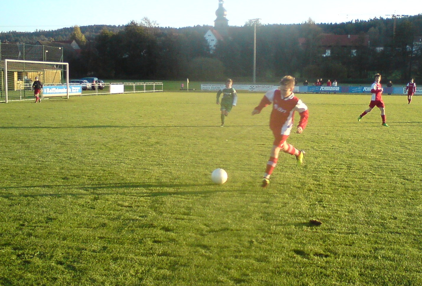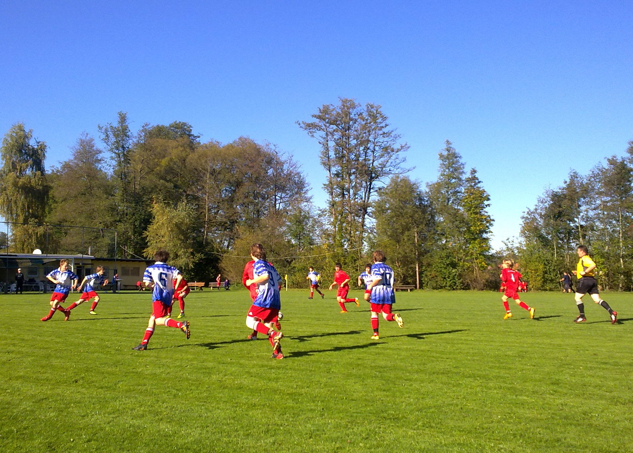 Ein verrücktes Spiel sahen die Zuschauer auf den Sportplatz in Hutschdorf. Unsere Mannschaft wollte unbedingt in diesem Spiel ihren ersten Dreier machen. Von Beginn an machte unsere JFG das Spiel. Bereits in der 2 min. setzte sich Tobias Lauterbach über links durch passte zu Niki. Niki nahm den Ball direkt und traf nur die Latte. In der 6. Minute tankte sich erneut Tobi durch, passte flach im 16er, wo Niki am schnellsten reagierte und aus 7 Meter zum 0:1 traf. Das 0:2 leitete diesmal Niki ein. Seine Hereingabe nahm Tobi an, legte sich die Kugel zurecht und drosch den Ball ins Netz. Das 0:3 hämmerte Philipp Kröger durch einen 25 Meter Freistoß in die Maschen. Auf Grund der bisherigen Spielweise und des äußerst schwachen Gegners liebäugelte man schon mit einem zweistelligen Ergebnis. Das 1:3 viel völlig überraschend. Ein Gegenspieler schnappte sich den Ball, lieft ohne Gegenwehr durch unser Mittelfeld und durch die gesamte Abwehr und erzielte so das 1:3. Nur 3 min. später lies TW Thomas einen harmlosen Ball durch die Finger gleiten und es stand nur noch 2:3. Unsere Mannschaft fing sich aber wieder und erzielte nach feiner Vorarbeit von Maxi Kolb und klasse Abschluss von Tobi das 2:4. Nur 1 Minute später staubte Niki nach Flanke von Tobi zum 2:5 Halbzeitstand ab. Mit der Spielweise unsere Mannschaft konnte man in der ersten Hälfte ja noch zu frieden sein. Was aber in der 2 Hälfte abging hatte mit Fußball nichts zu tun. Es waren keine 4 Minuten gespielt da stand es schon 4:5. Danach folgten die einzigen 10 Minuten ohne Tor.( Ein wahres Fehlpassfestival) Glücklicherweise konnte unser guter Stürmer Tobi in der 50. min nur durch ein Foul gebremst werden. Den fälligen 11 Meter verwandelte Niki sicher. Beim 5:6 trat Andreas A. nur halbherzig gegen die Kugel, wobei der Ball nach 5 Metern schon wieder beim Gegner landete. Dieser freute sich und hämmerte das Leder unter die Latte. Aber fast im Gegenzug war Tobi wieder zur Stelle,als er bei einem missglückten Abwehrversuch der Platzherren blitzschnell schaltete und mit einem flachen Schuss ins linke Eck einen 2 Tore Vorsprung wieder herstellte. Dass man in 3 Minuten noch 2 Treffer (6:7 und 7:7) kassieren kann merkten wahrscheinlich nur die Zuschauer, denn unsere Spieler waren wahrscheinlich schon in der Kabine zum Duschen. Jetzt gilt es, sich gemeinschaftlich zusammenzureißen und den Abstiegskampf anzunehmen.