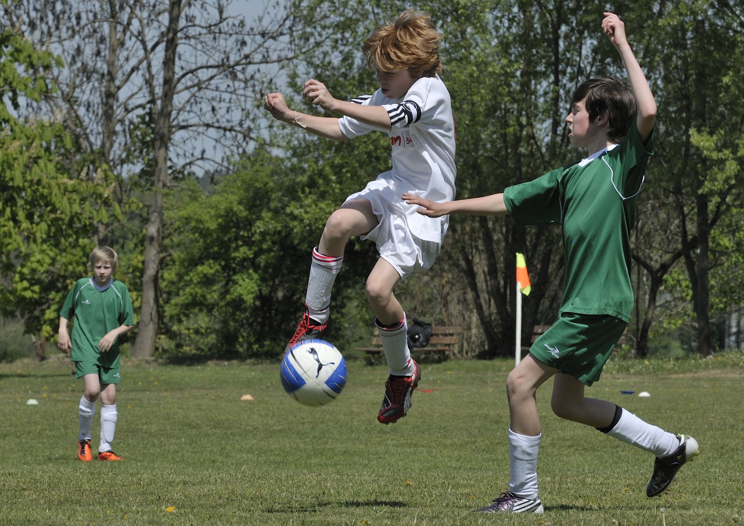 In der ausgeglichenen Partie hatten die Lindauer die erste größere Chance erst nach 10 Minuten. Sie wurde aber von unseren TW Flo pariert, der sich gewagt dem vor ihm auftauchenden Stürmer entgegen warf. Den an seinen Körper abprallenden Ball hatte er im Nachfassen sicher. Ein klasse Tor erzielte Fabricio in der16. Min. Fabian Reißaus führte einen Einwurf schnell aus, Fabicio schnappte sich das Leder und startete ein Solo von der Mittellinie aus. Nicht nur die halbe Lindauer Mannschaft lies er alt aussehe, auch der TW hatte keine Chance als Fabricio sicher verwandelte. In der 23. Minute fiel fast das 2:0, aber Fabrico schoss knapp vorbei, als er schön von Fabian in den Lauf gespielt wurde und dadurch alleine aufs Tor laufen konnte. Kurz darauf viel aber das 1:1. TW Flo konnte eine Flanke nicht weit genug aus den 16er fausten. Der Ball landete beim Gegner, dieser schoss sofort, sprang vor dem zur Abwehr im Tor stehenden Alexander Blätterlein auf und landet im Tor. „Ein unnötiger Treffer“. Nach der Pause ging es spannend weiter, denn beide Mannschaften wollten auf den schwer bespielbaren Rasen gewinnen. Nach 37 Spielminuten setzte der starke und überall zu findende Sebastian Kolb einen Freistoß aus 22 Metern nur knapp neben den Pfosten. In der 45. Minute konnten wir es unseren Weltklassetorhüter verdanken, dass es beim 1:1 blieb. Flo fischte nämlich einen Schuss genau aus den Winkel. 5 Minuten später scheiterte Sebastian abermals mit einem Freistoß nur kapp. Kurz vor Spielende tankte sich „Leihgabe“ Fabricio durch und wurde im 16er Elfmeterreif gefoult. Das große zittern begann, als es darum ging den fälligen Elfmeter zu schießen. Schließlich schnappte sich Fabian Reißaus den Ball und verwandelte sicher zum verdienten 2:1. Ein wichtiger Sieg in einer Spielgruppe wo jeder jeden Schlagen kann und somit 3 Punkte sehr wichtig sind. Tore: 1:0 Fabrico Schubert, 2:1 Fabian Reißaus