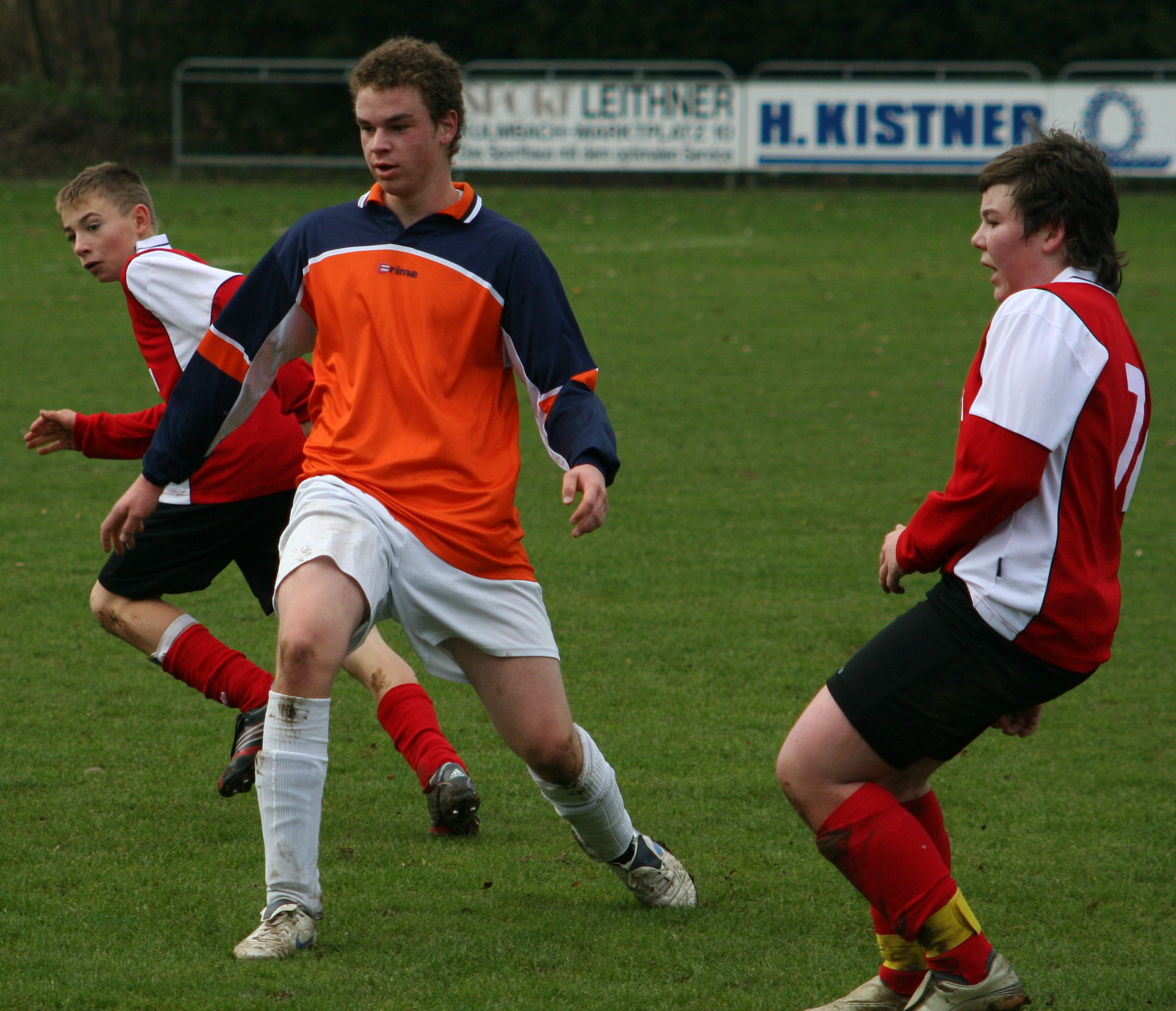 Drei Punkte aus Thurnau zu entführen war Pflicht am Wochenende und das wurde auch erreicht – aber wie!!! Die JFG begann stürmisch und druckvoll, konnte jedoch aus ihren Chancen kein Kapital schlagen. Im Gegenteil in der ersten Halbzeit glich das Spiel einem F-Jugendspiel. Alles rannte dem Ball hinterher, das Einzelspiel wurde maßlos übertrieben und der Raum des Spielfeldes nicht genutzt. Lediglich Andreas Fischer versuchte in der ersten Halbzeit Ruhe und Ordnung ins Spiel zu bringen. In der 12. Minute, nach einem Eckball der Einheimischen, gingen diese durch einen Schuss von der Strafraumlinie völlig überraschend in Führung. Die darauf folgenden wütenden Angriffe der JFG verliefen sich ins Leere, da wie bereits erwähnt „Einzelfußball“ und nicht Mannschaftsfußball gespielt wurde. Als in der 28. Minute endlich einmal der Mitspieler gesehen wurde Stand es verdienter Maßen 1:1. Maximilian Springer spielte einen tollen Pass auf Marcel Reißaus, der dann noch den Torwart ausspielte und überlegt zum Ausgleich einschoss. Nach einer Kabinenpredigt durch die Trainer wendete sich das Spiel in der zweiten Halbzeit. Alexander Wesner setzte sich auf der linken Seite gekonnt durch, flankte scharf nach innen und Maximilian Springer hatte keine Schwierigkeiten den Ball aus 2 Metern im Tor unterzubringen. Dies geschah kurz nach Wiederbeginn. In der 41. Minute erlief sich Alexander Wesner einen Rückpass der Thurnauer und vollendete zum 3:1 für die JFG aus kurzer Distanz. Das Schönste Tor erzielte Manuel Mösch in der 50. Minute nach eine kurz ausgeführten Ecke, Nino Bursic schlug den Ball scharf und halbhoch in den Strafraum und Manuel den Ball volley aus 5 Metern ins Tor. Wichtig waren die drei Punkte, doch hätten wir gegen einen Gegner gespielt, der technisch und konditioneller stärker gewesen wäre als Thurnau, dann wäre es wohl nichts mit dem Sieg geworden. Doch egal – für uns gilt es jetzt im letzten Spiel der Vorrunde am Samstag in Fränkische Schweiz Nord zu Punkten, damit wir im gesicherten Mittelfeld „überwintern“ können.