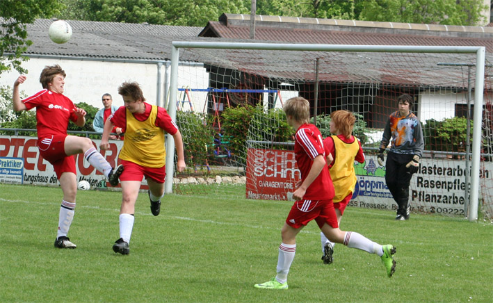 Bei idealen Fußballwetter hatte die JFG den Tabellenletzten Main-Aurachtal zu Gast. Auf dem Papier, eine klare Sache und in den Köpfen der Spieler war wohl nur die Höhe des Sieges noch die Frage. In der 4. Spielminute gab es die erste Torchance, bei der sich Christoph Hohner über rechts gut durchsetzte, aber nicht entschlossen genug zum Tor zog und den Ball übers Tor schoss. Danach war erstmal Schluß mit lustig und die Gäste bekamen Übergewicht.Deshalb hatte die Abwehr alle Hände voll zu tun. Die Offensivabteilung der JFG schien zu diesem Zeitpunkt nicht auf dem Platz zu sein und somit dauerte es 20 Minuten bis zur nächsten Möglichkeit. Max Springer setzte nach schönen Pass über links Florian Korn ein, der aber auch das Tor nicht traf. In der 34.Minute war es dann soweit, nach einem Eckball von Christoph Hohner brachte Florian Korn mit einem herrlichen Drehschuß die JFG in Führung. So ging es in die Pause. Nach dem Wechsel war dann endlich zu spüren, dass wir nur durch Kampf den Klassenerhalt schaffen können. In der 57.Minute spielt sich Marcel Reißaus bis zur Grundlinie durch, legte schön zur Mitte zurück wo Christoph Hohner nur noch einschieben musste. Ab diesen Zeitpunkt erarbeitete sich die Heimelf im 5-Minuten Takt gute Tormöglichkeiten, die aber entweder überhastet, oder durch übertriebenes Einzelspiel einiger Spieler (Marcel, Max) vergeben wurden. Marcel Reißaus blieb es vorbehalten, den 3-0 Endstand zu erzielen. Nur durch eine 100 prozentige Steigerung in der zweiten Halbzeit war dieser Pflichtsieg möglich.
