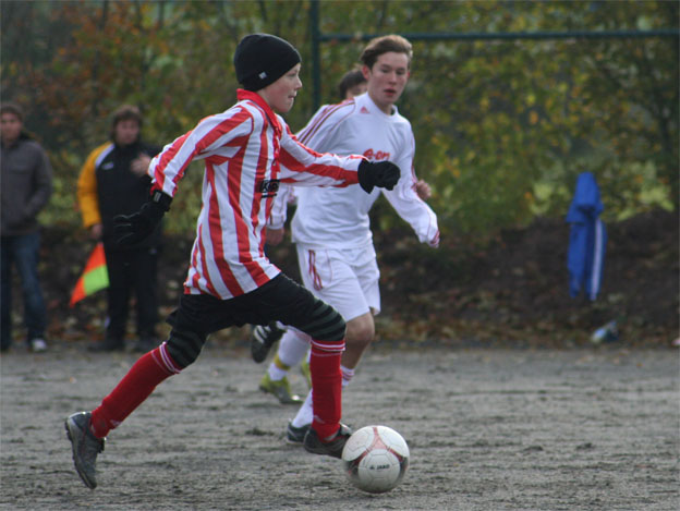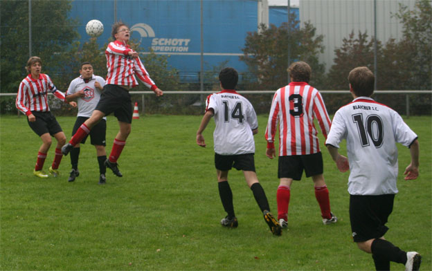 Etwas überraschend, aber dennoch völlig verdient erreichte die B-Jugend die Endrunde der Hallenkreismeisterschaft in Kulmbach. Mit vier Siegen und einem Unentschieden wurden die Jungs souverän Erster ihrer Gruppe und treffen nun bei den Finals am Montag, 03.01.2011 auf den TSV Trebgast. Keeper Jens Schmeißner zeigte wiederum glänzende Torwartleistung, Andre Warzecha und Christoph Hohner ließen den gegnerischen Stürmern keinen Freiraum, Jonas Hoffmann und Florin Korn kämpften und waren hinten und vorne zu finden, und Marcel Reißaus sowie Alexander Wesner wandelten konsequent die Chancen in Tore um. Recht herzlichen Dank auch an die beiden Youngster Domenic Hollweg und Julian Schieber, die bei Ihrem Kurzeinsatz ihre Sache sehr ordentlich machten und die Mannschaft toll mit unterstützten. Da wir bereits jetzt mehr erreicht haben als erwartet, kann die Endrunde ein Schaulaufen für uns werden und wir können dabei nur gewinnen – was wir allerdings jetzt auch wollen. Besonders erfreut waren die Trainer, dass die Jungs nach den Querelen der letzten Tage um sogenannte „Möchtegern-Stars“ als eine Mannschaft aufgetreten sind, und eine sportliche Leistung an den Tag legten, die Hoffnung für die Rückrunde auf dem Großfeld gibt.
