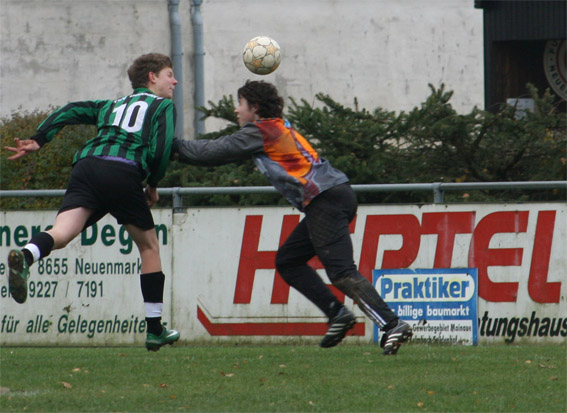 Endlich wieder ein Lebenszeichen von der B-Jugend. Obwohl man gegen den Tabellenführer, JFG Neubürg, doch recht deutlich mit 1:5 verlor, war das Spiel eines der besseren der letzten Zeit. Neubürg ging zwar innerhalb der ersten 20 Minuten mit 3:0 in Führung und spielte in dieser Zeit einen sehr guten Fußball, schaltete danach aber einen Gang zurück. Dies nutze Schiefe Ebene und tankte Selbstvertrauen durch gute Aktionen, schöne Spielzüge und schnelle Aktionen im Abschluss. Die Mannschaft merkte dass man bei weitem nicht so schlecht sei wie es der Tabellenplatz aussagt und setzte dieses Selbstbewusstsein auf dem Spielfeld um. Es entwickelte sich von nun an ein schön anzusehendes Jugendspiel. Bei besserer Chancenauswertung hätte das 1:3 in der 42. Minute durch Marcel Reißaus nicht der Anschlusstreffer sein können, sondern bereits das 3:3. Jeder Mannschaftsteil erfüllte seine Aufgabe, im Mittelfeld reduzierten sich die Abspielfehler und der Sturm suchte einen schnellen Torerfolg, und besonders wichtig war, dass jeder den Anderen mitzog und ihn nicht verbal nieder machte. Sollte diese Leistung und Einstellung nicht nur eine Eintagsfliege darstellen, sondern sich über Trainingseinstellung und kommende Spiele fortsetzen, so könnte es mit dem Klassenerhalt eventuell doch noch etwas werden. Lassen wir es einfach auf uns zukommen, den zu verlieren haben wir ja eh nichts mehr.